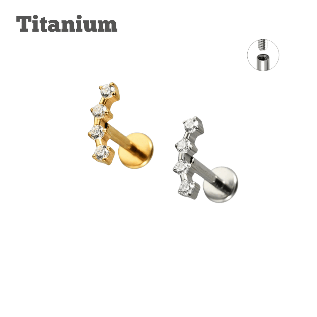 Crafted from medical grade titanium, this threaded labret is ideal for conch and helix piercings. Featuring a secure threaded lock and a comfortable flatback design, it ensures a snug fit without irritation. With an 8mm top size and 16-gauge thickness, it offers both style and strength for everyday wear. Elevate your piercing experience with this reliable and sleek accessory.