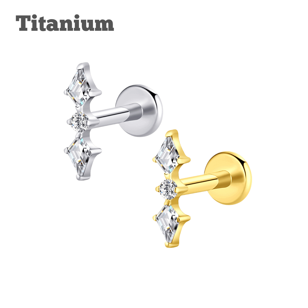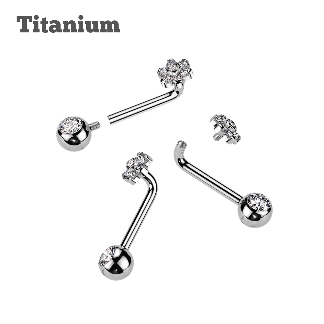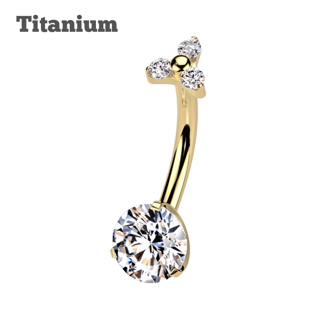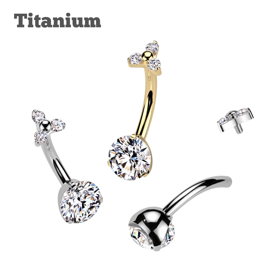 Titanium Bezeled Gem Ends Internally Threaded Belly Barbell