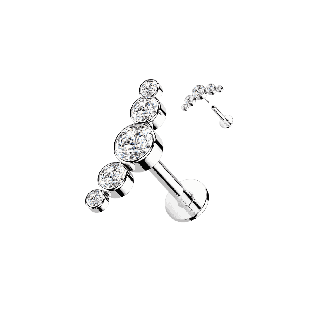 Labret sans fil en grappe de pierres précieuses rondes en or 14 carats