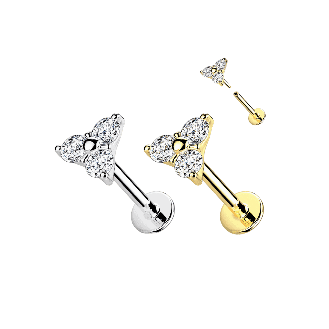Labret sans fil en grappe de pierres précieuses Marquis en or 14 carats