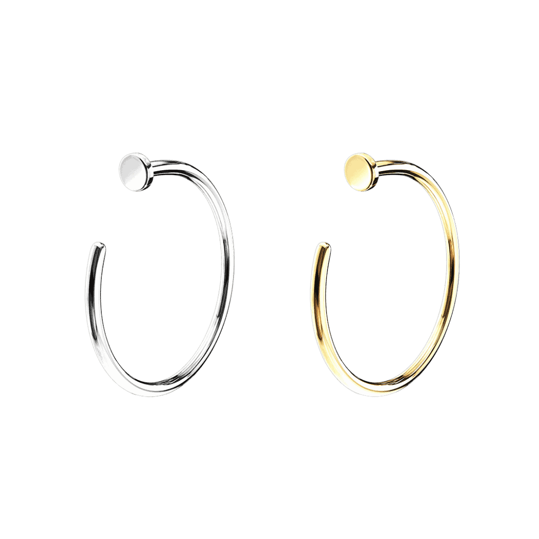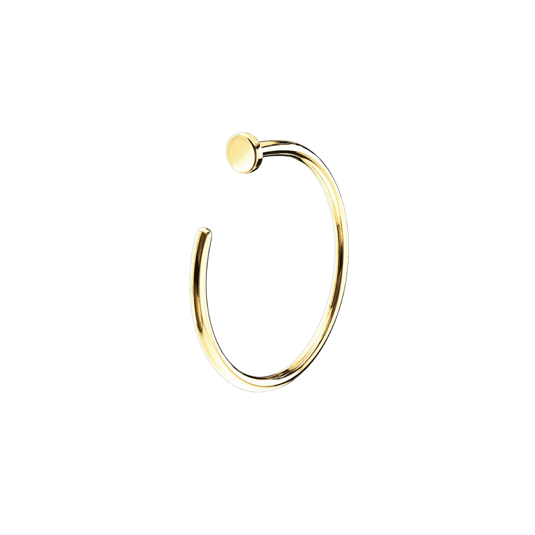 Convient aux piercings d'oreille et de septum. Le semi-créole à clous en or 14 carats est un bijou unique et accrocheur qui peut être utilisé dans les perçages d'oreilles. Le design des ongles donne aux bijoux un look fantaisiste et ludique.