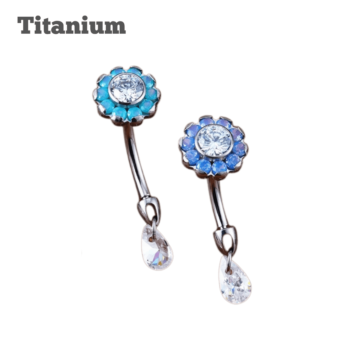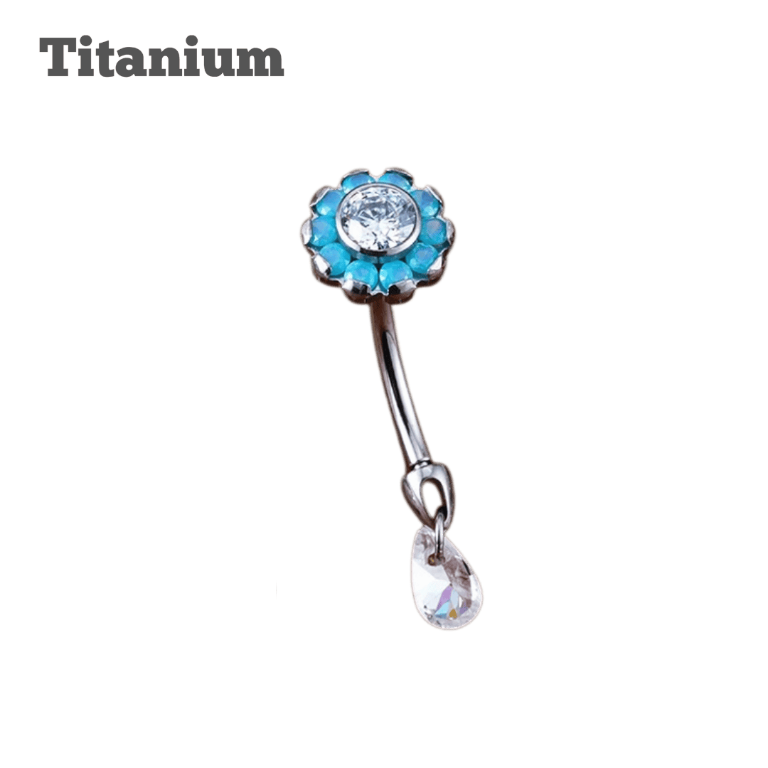 Titanium Daisy Top with Dangling Gem Threaded Curved Barbell