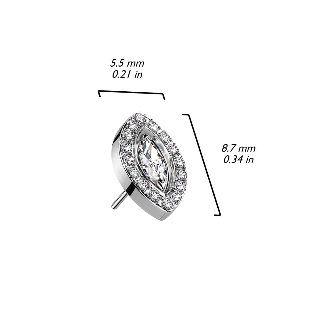 Perfect for threadless labrets or barbells. Studded Evil Eye Titanium Threadless Top, which is a type of jewelry that can be used in various piercings, such as the conch and lobe piercing.