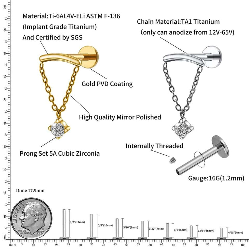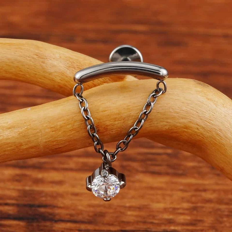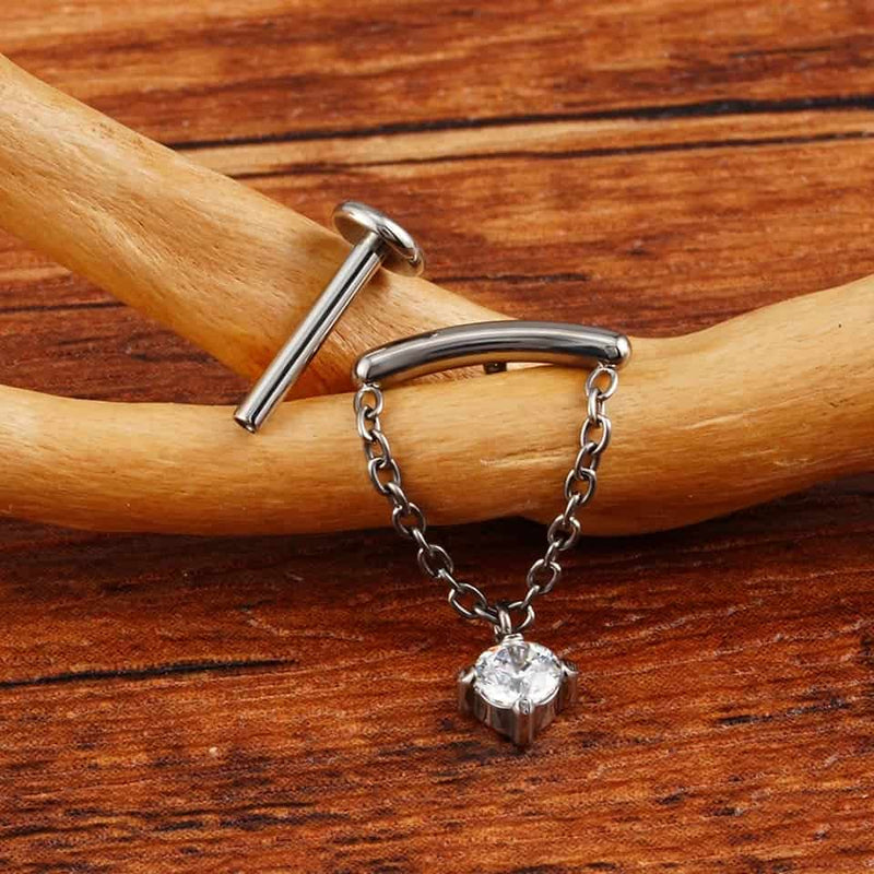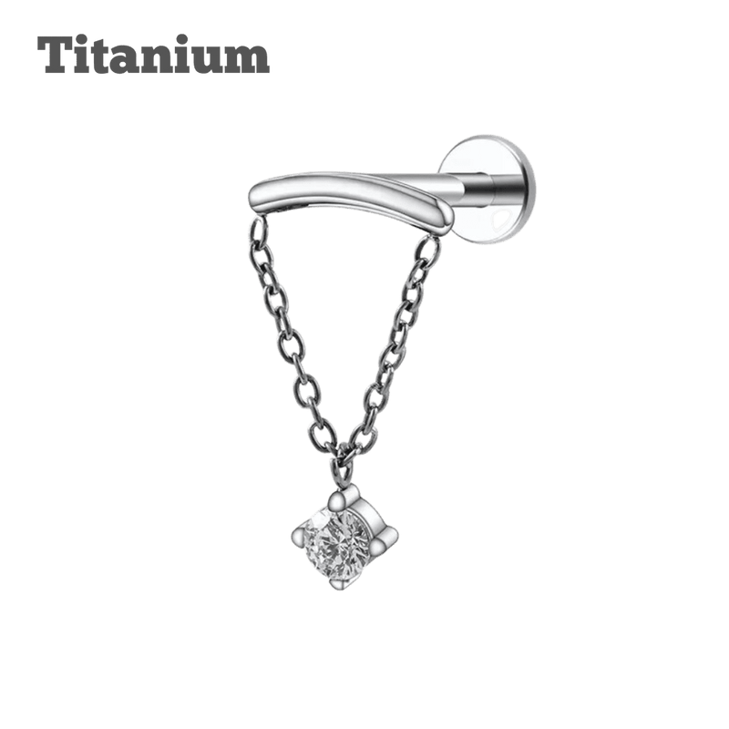Achieve stunning style with this Titanium Floating Chained Solitaire Gem Labret! Crafted with the highest grade implant titanium, it features a prong set 5A Zirconia gleaming from a floating chained solitaire. Enjoy long-lasting comfort with its hypoallergenic and internally threaded design, and show off a high quality mirror polished finish that'll never go out of fashion. Experience beauty, comfort and quality today!