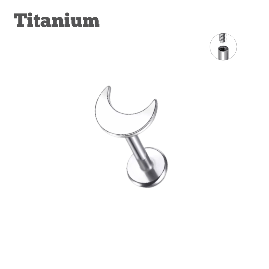 Experience ultimate comfort and style with our Titanium Plain Flat Crescent Moon Threaded Labret! This hypoallergenic earring features a flat plain crescent moon design and a threaded lock for a secure fit. Perfect for both lobe and cartilage piercings, it's a basic earring that won't compromise on quality. Elevate your look and protect your skin with this must-have accessory.