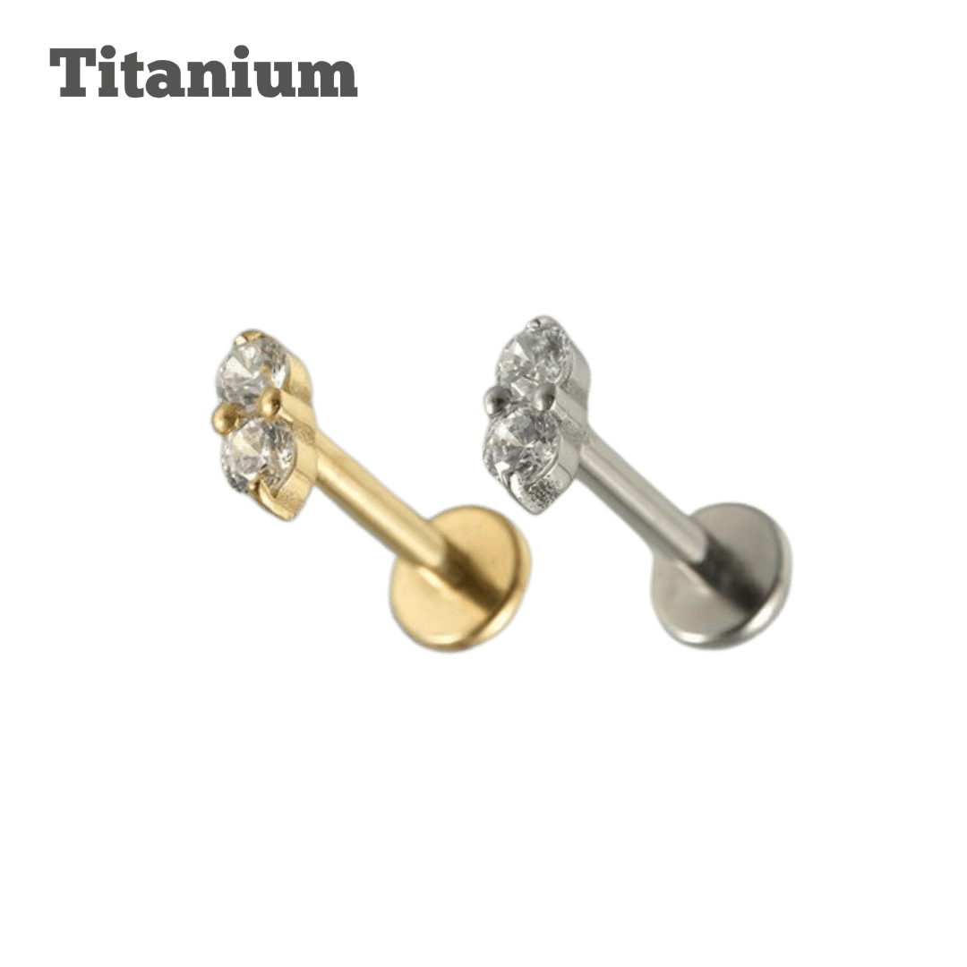 Elevate your piercing game with our Titanium Twin Gems Threadless Labret! Made with medical grade titanium, it's perfect for new piercings and features an internally threaded lock for maximum comfort. The flatback post ensures a secure fit, making it a must-have for tragus piercings. Upgrade your style and experience today!