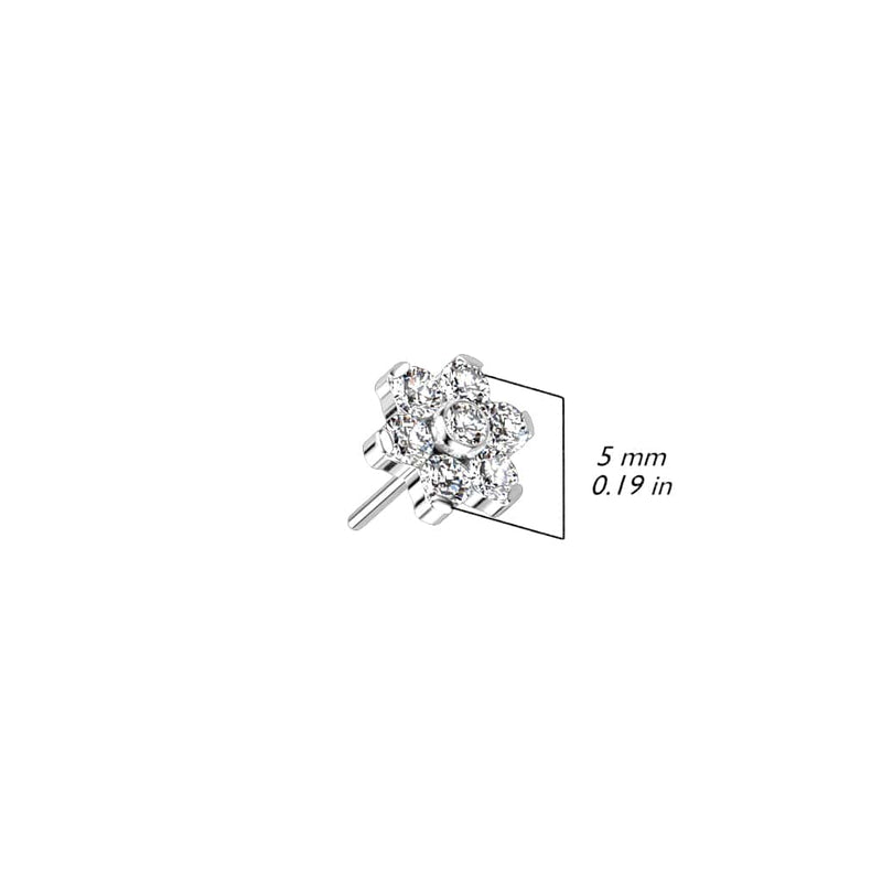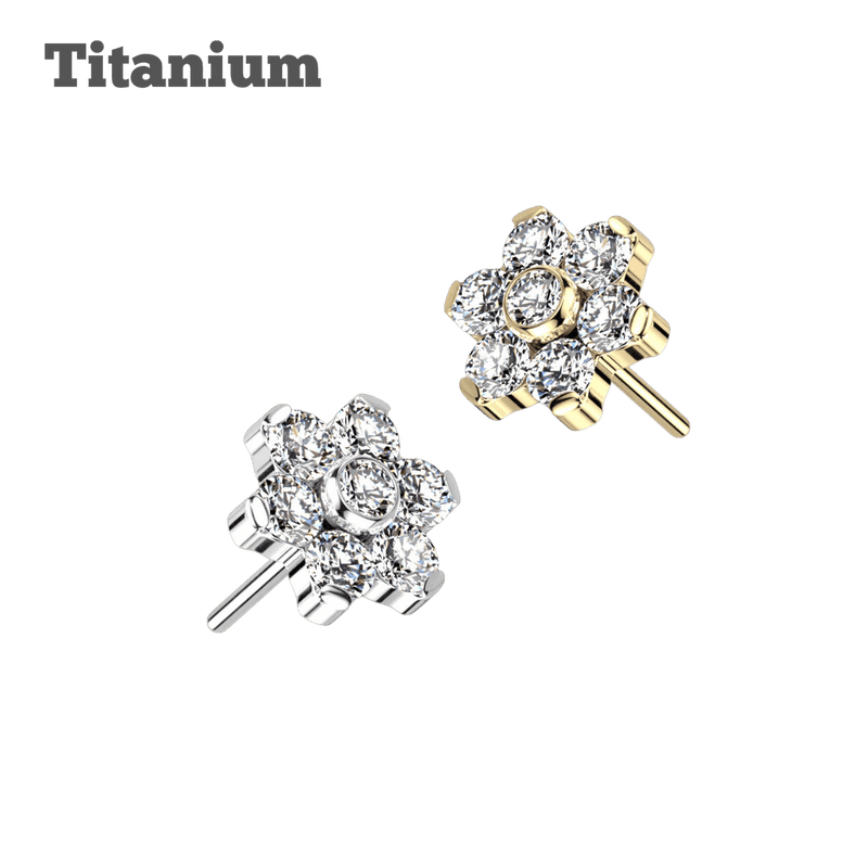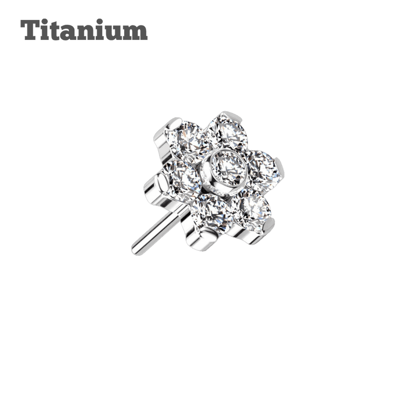 Perfect for threadless labrets or barbells. The gemstones on the flower design adds a touch of sparkle and elegance, making it a great choice for those who want to add a touch of sophistication to their look. The threadless design of the top is easy to insert and remove, making it a great choice for those who want a hassle-free jewelry experience. The titanium material of the flower gem titanium threadless top ensures durability and longevity.